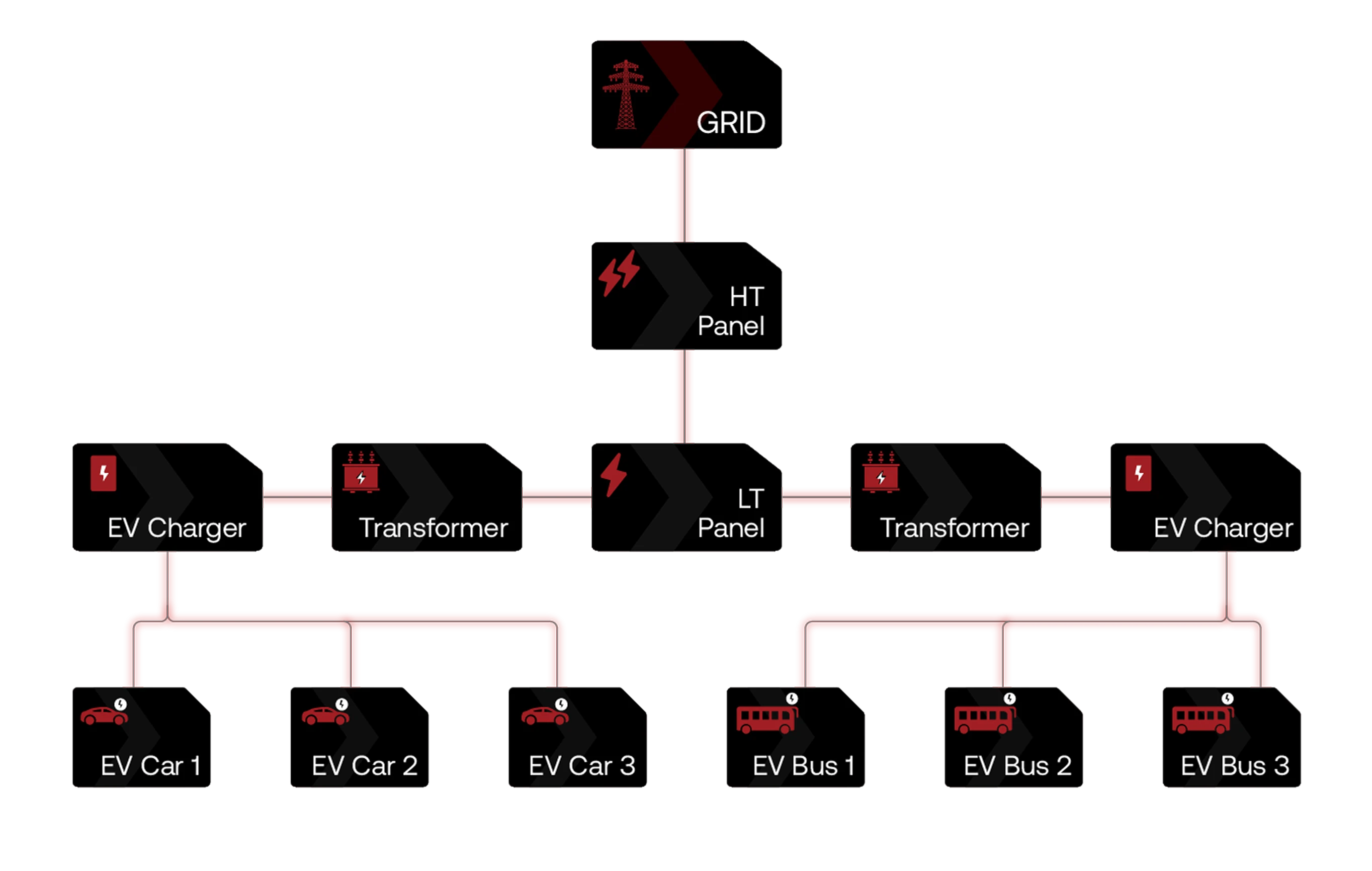 Kazam EMS connects every part of your EV energy management system – grid, transformer, charger and vehicle into one smart system that runs on data, not guesswork.